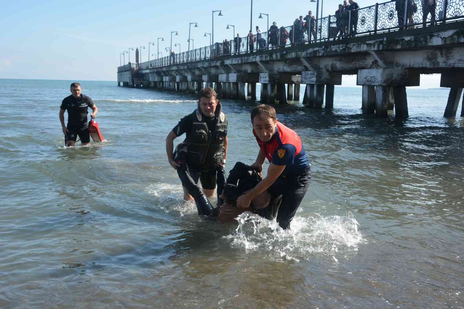 Çamurlu Mahallesi sahil sınırları içerisinde bulunan Ünye İskelesi’nde meydana gelen olayda iddiaya göre bunalıma giren Ayhan E. (48), bir süre demir korkuluklara tutunarak beklemeye başladı. Çevredekilerin şaşkın bakışları arasında kendisini denize bırakan vatandaşı görenler durumu 112’ye bildirdi. İhbar üzerine bölgeye sağlık, itfaiye ve polis ekipleri sevk edildi.