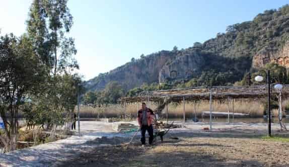 Muğla’nın Ortaca ilçesine bağlı Dalyan mahallesinde bulunan Kaunos çay bahçesinde sezon hazırlığı yapılıyor.Ortaca Belediyesine ait olan Kaunos çay bahçesinde yaz sezonuna hazırlık yapılıyor. Yaz aylarında eşsiz kral mezarları manzarası...