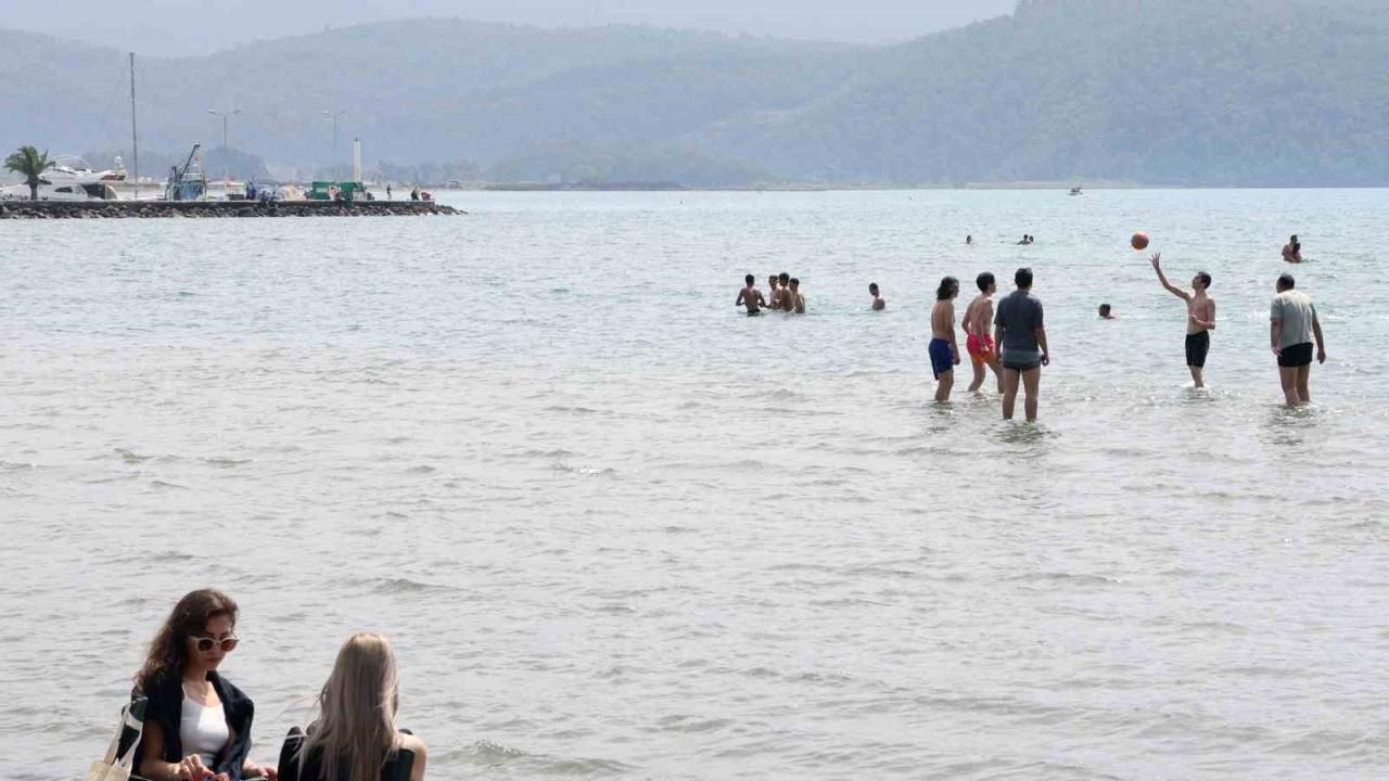 Muğla genelinde 31 Mart yerel seçimleri için vatandaşlar seçime büyük rağbet gösterirken, hava sıcaklığının 25-27 derece dolayında seyretmesi sonrası oyunu kullanan vatandaşlar Akyaka sahiline akın etti.