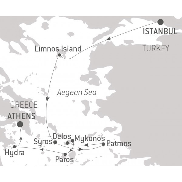 İstanbul'dan hareketle Limnos adasına giden geminin turu Ege adaları sonrası Yunanistan'ın Pire Limanında sona erecek.