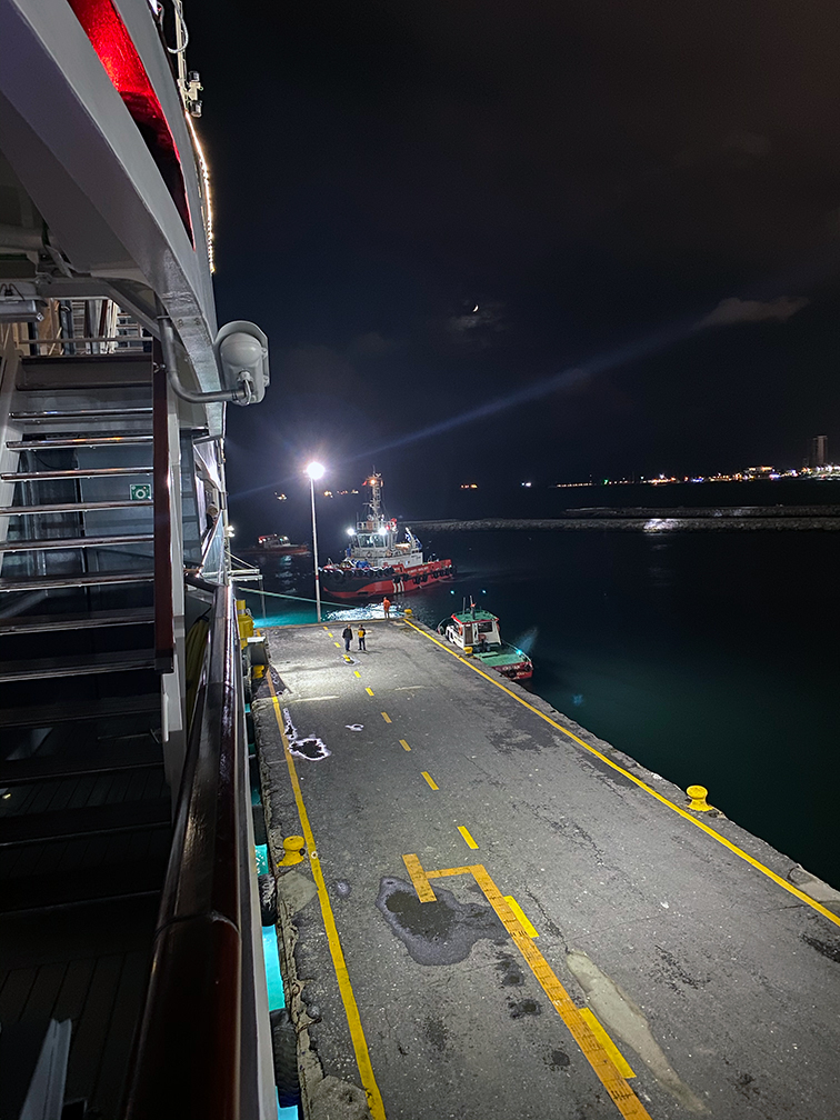 Gemiye Zeyport yanaşma ve hareketinde Kıyı Emniyeti Genel Müdürlüğü'ne bağlı kılavuz kaptan, römorkör ve palamarcılar hizmet verdi.