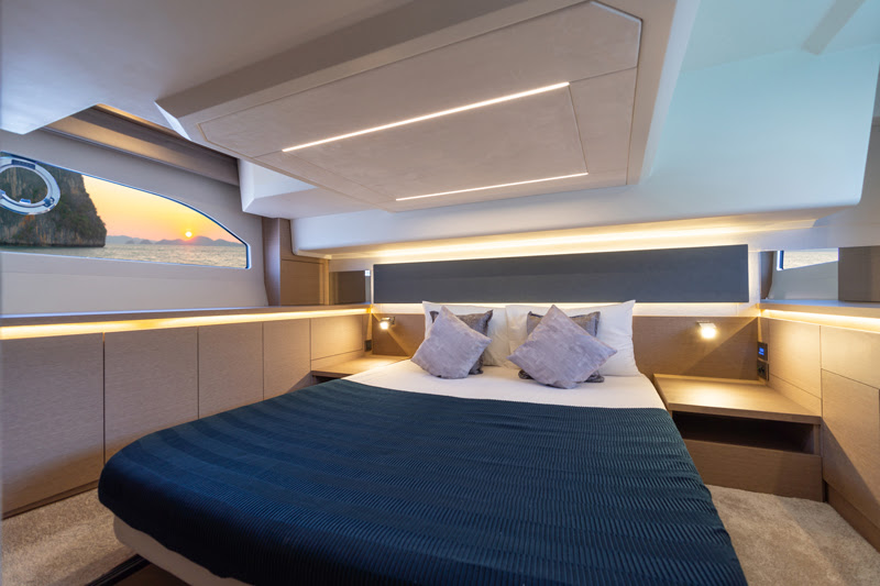 Model, kullanım tarzınıza bağlı olarak tercih edebileceğiniz 2 x 380 HP ya da 2 x 425 HP makine seçenekleriyle geliyor. Joystick ve bowthruster’la birleşen bu güç, idareyi ve tekneye hâkimiyeti artırıyor.