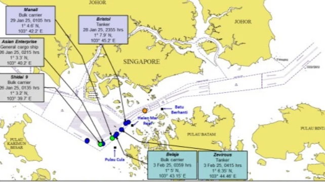 ReCAAP, bu olayların kısa zaman aralıklarıyla gerçekleştiğini belirtiyor; 26 Ocak ve 3 Şubat sabah erken saatlerinde ikişer rapor, ayrıca 28-29 Ocak gece arası ikişer rapor yer alıyor. Tüm bu olaylar, doğuya giden şeritte ve Endonezya'ya yakın, Singapur Boğazı'nın batı ucuna yakın bölgede meydana geldi.