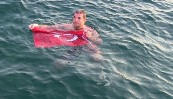 Etkinliğini tamamlayan yüzücü Alper Sunaçoğlu denizde Türk Bayrağı açtı. 51,2 kilometrelik mesafenin bir bölümünü kötü hava sağlık sorunları nedeniyle tekneyle geçmek zorunda kalan rekortmen Sunaçoğlu, şunları söyledi: