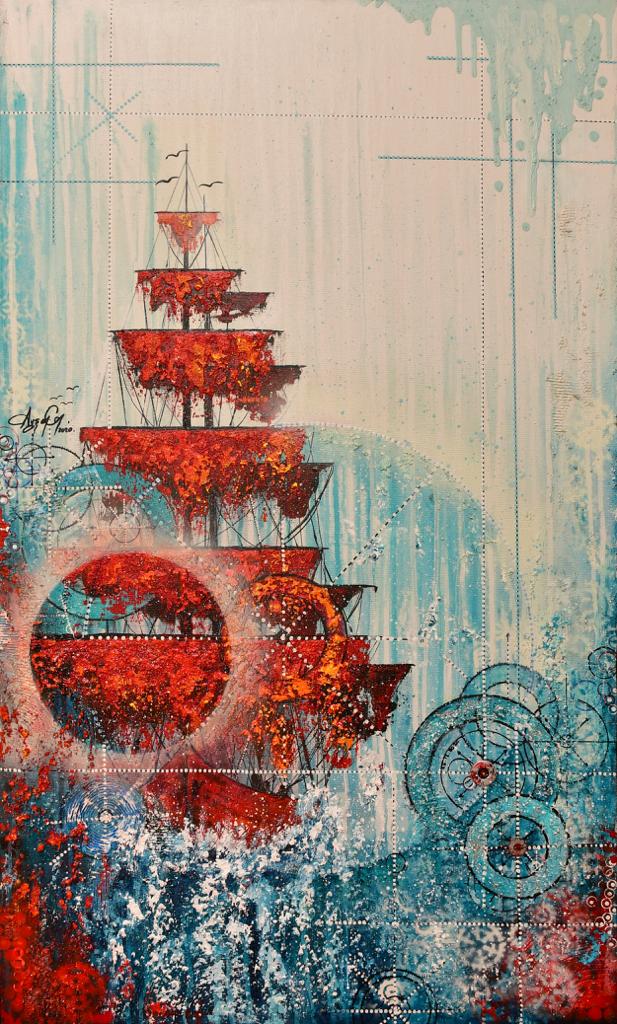 Bir kuru yük gemisinde altı yıl boyunca yaşayarak 30'dan fazla ülke gezen Ressam Ayşen Can'ın denizi merkezine alan eserlerinden oluşan dördüncü sergisi "Sır-lı Seyir" sanatseverle buluştu.