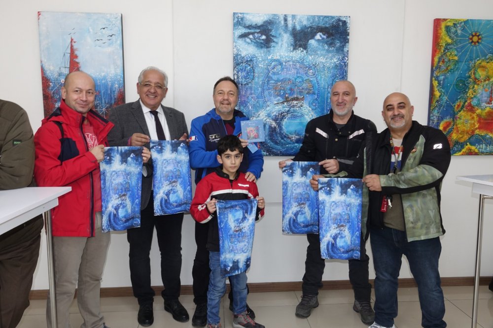 Ressam Ayşen Can, Atatürk'ün derin ve kendinden emin bakışları altında yüksek dalgaları aşar şekilde resmettiği Kartal İstimbotu'nun yer aldığı eserine, "Geldikleri gibi giderler" adını verdiğini belirterek, Mavi Vatan'ın gündemde olduğu bugünlerde Türkiye'ye denizlerin önemini de bir kere daha göstermek istediğini söyledi.