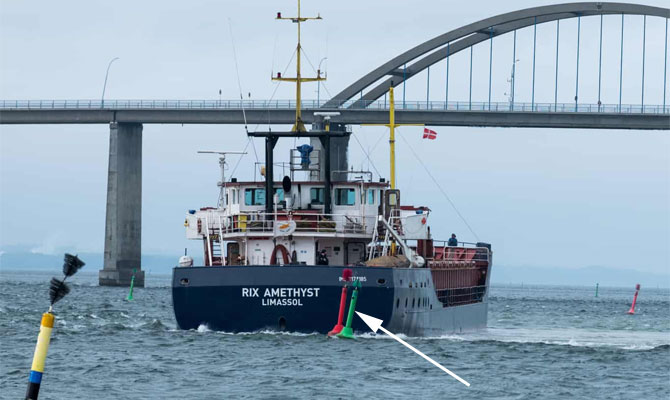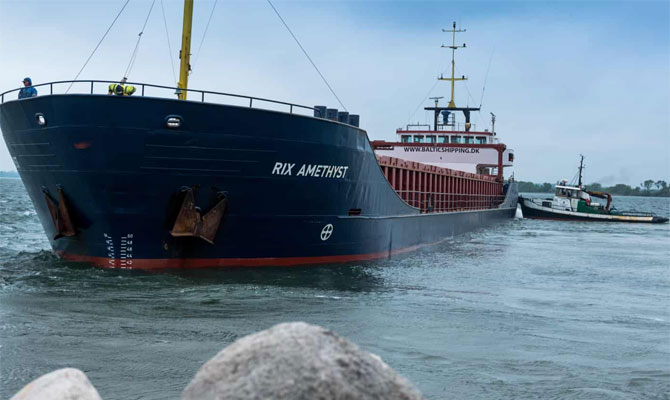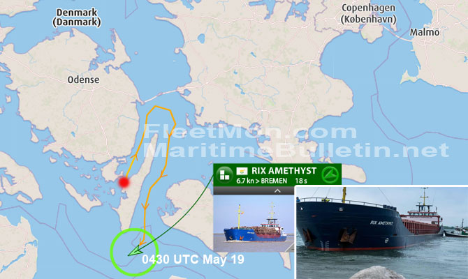 Arpa yüklü kenel kargo gemisi RIX AMETHYST 18 Mayısgünü Danimarka'nın Langeland adasında Rudkobing Limanından ayrılırken karaya oturdu. Bremenden çağrılan römorkörler yardımıyla 1.5 saatlik çalışmayla yüzdürdükten sonra manevra yaparken,şamandıraya dolandı ve yeniden karaya oturdu. Bu sefer kendi imkanlarıyla yüzmeyi başaran RIX AMETHYST Rudkobing Köprüsü'nün altından geçti ve muayene için demirledi.