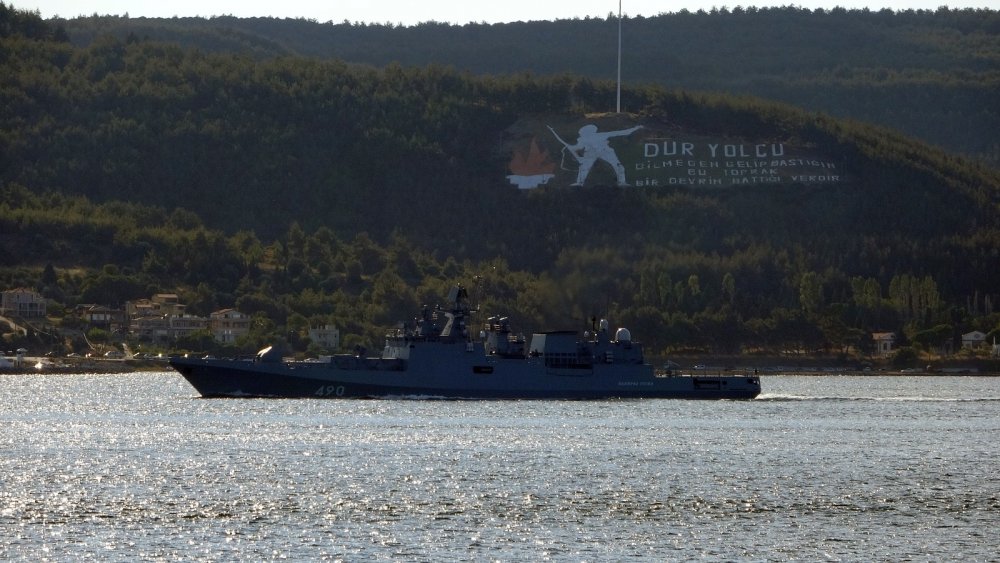 Marmara Denizi'nden saat 16.15 sıralarında Çanakkale Boğazı'na giriş yapan Romanya Donanmasına bağlı Mai 0201 devriye gemisi ile Rusya'nın Karadeniz filosuna ait 490 borda numaralı 'Admiral Essen' adlı savaş gemisi, saat 17.45 sıralarında Çanakkale önlerinde oldu. 'Dur Yolcu' sembolü ile Kilitbahir Kalesi önünden geçerek Ege Denizi'ne doğru yol alan savaş gemilerine Türk Sahil Güvenlik botları eşlik etti.