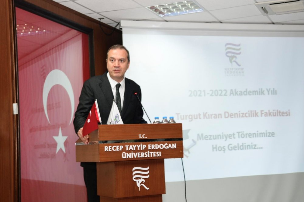 İMEAK Deniz Ticaret Odası Yönetim Kurulu Başkanı Tamer Kıran, Rize Recep Tayyip Erdoğan Üniversitesi Turgut Kıran Denizcilik Fakültesi’nin, 23 Haziran 2022 Perşembe günü gerçekleştirilen mezuniyet törenine katıldı.