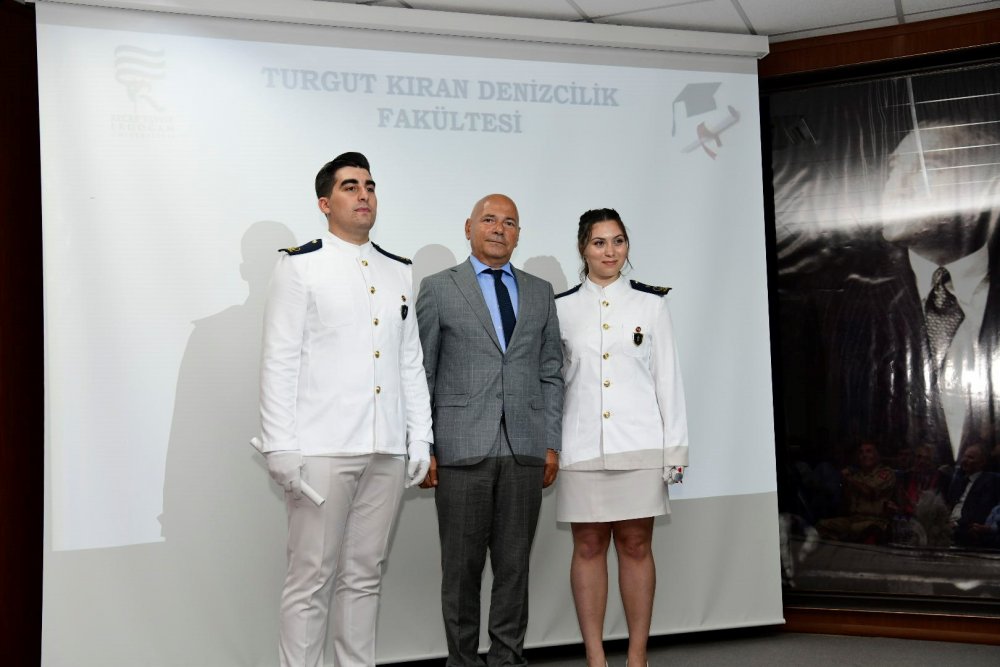 Mezuniyet törenine Odamız Yönetim Kurulu Üyeleri Adnan Naiboğlu ve Taylan Kalkavan ile Piri Reis Üniversitesi Rektörü Prof. Dr. Oral Erdoğan da iştirak etti.