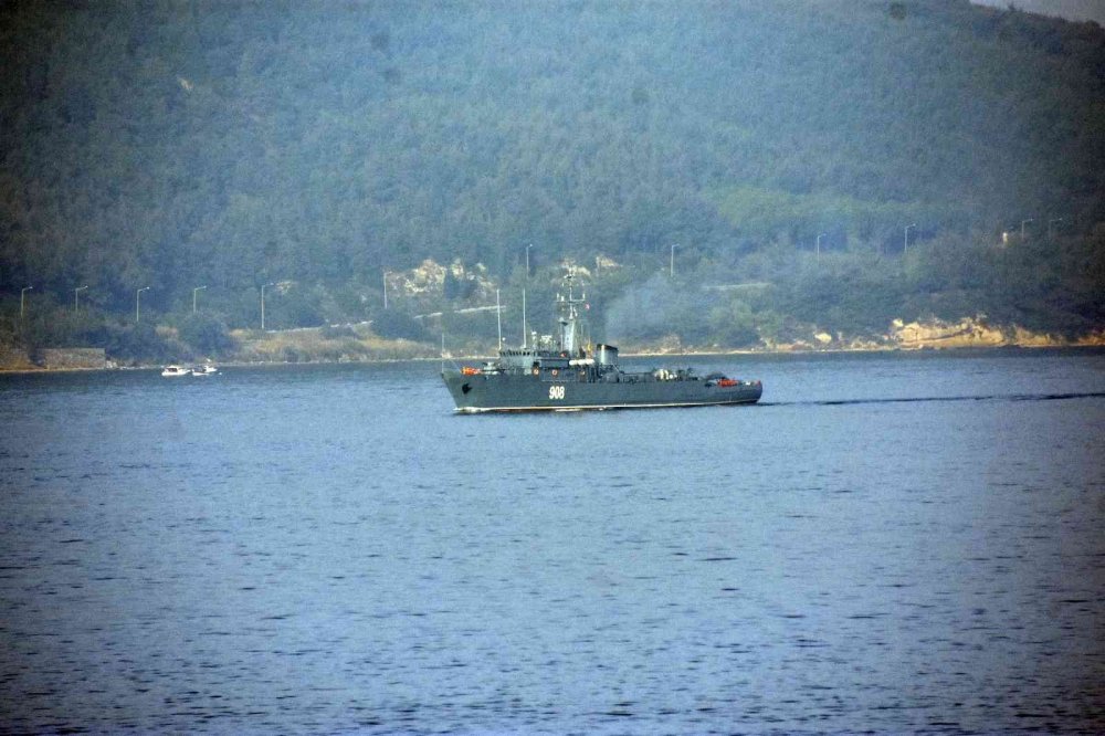 Rus Donanmasına ait 'MB-304' askeri römorkörü ile arkasında çektiği 840 borda numaralı devriye botu 'Kadet' ve 908 borda numaralı savaş gemisi 'Admiral Zakharin' Çanakkale Boğazı'ndan geçerek, Ege Denizi'ne doğru yol aldı.
