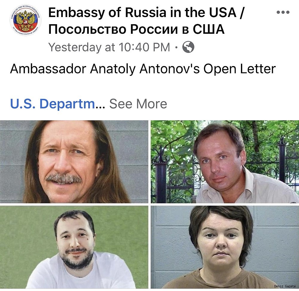 Rusya'nın ABD Büyükelçisi Anatoliy Antonov, ABD makamlarına ABD cezaevlerinde bulunan Rusların serbest bırakılmasına yönelik bir mektup yazdı.