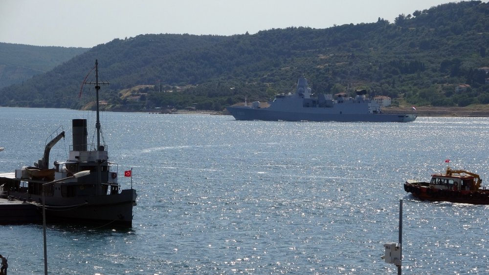 Rusya'nın Karadeniz'de uyarı ateşi açtığı İngiliz Kraliyet Donanmasına ait D36 borda numaralı 'HMS Defender' ile Hollanda Kraliyet Donanmasına ait F 805 borda numaralı 'HNLMS Evertsen' Çanakkale Boğazı'ndan peş peşe geçerek, Ege Denizi'ne doğru yol aldı.