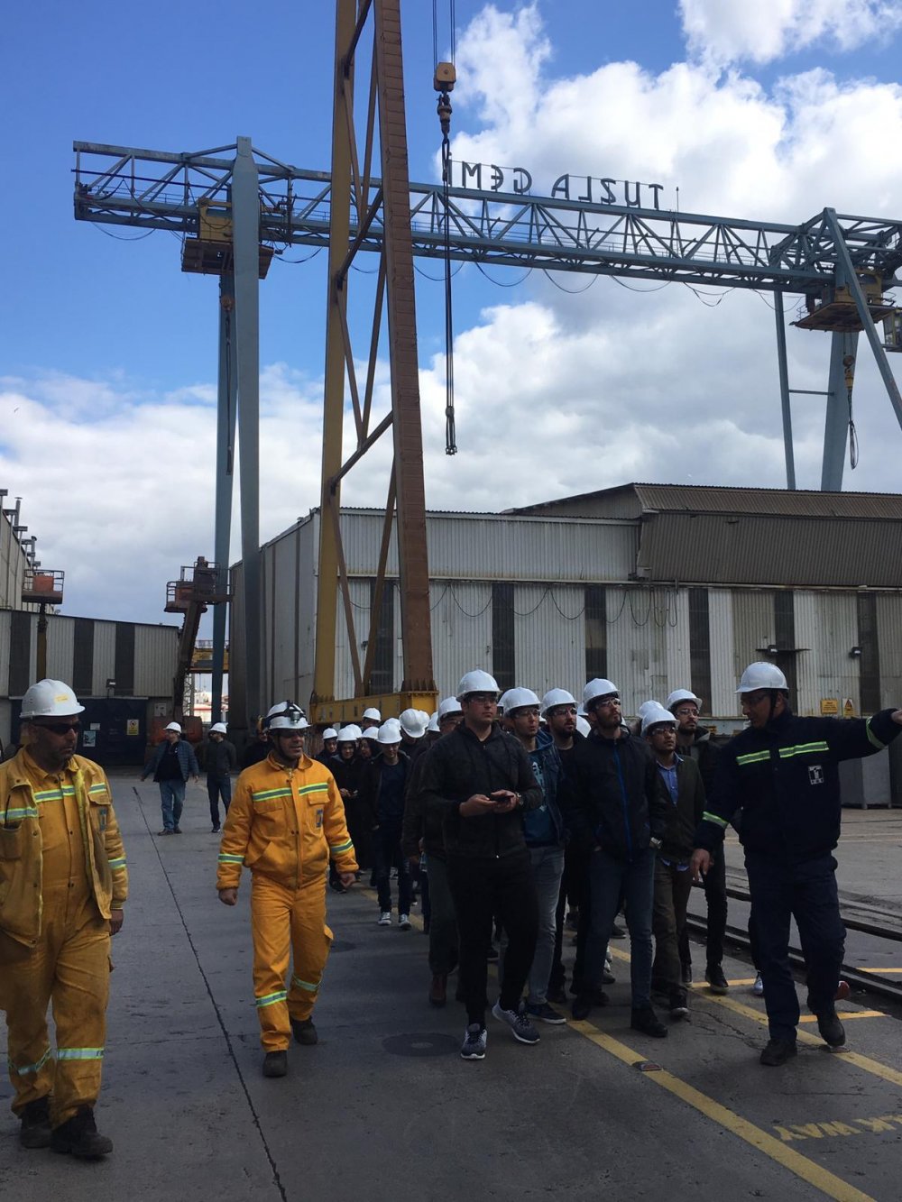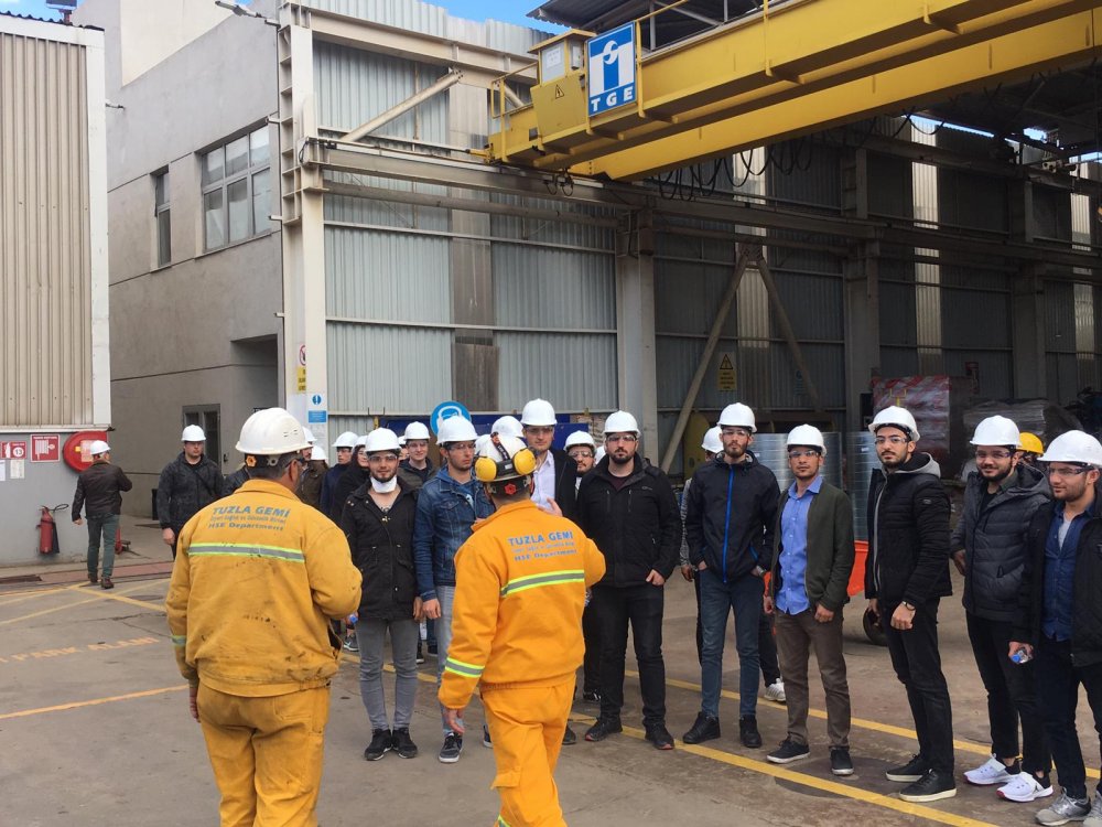 Tuzla Liman Başkanlığı sorumluluk sahasında bulunan GEMAK TGE TERSANESİ’ne Öğr.Elemanı Kpt. Ramazan Açıkgöz ile birlikte yapılan teknik ziyarette öğrenciler; tersanenin sağlık, emniyet, çevre ve kalite politikaları ve güzel uygulama örneklerinin yanında tersanenin teknik donanım, havuz, atölyeler, kızaklar ve havuzlarla ilgili bilgiler, gemilerin imalat ve bakım-onarımları hakkında bilgi sahibi oldular. Öğrencilerin tersaneye intikallerinden hemen sonra planlandığı gibi tersane güvenlik birimlerince öğrenciler uygun güvenlik toplanma sahasında toplandılar. Öğr. Elemanı Ramazan Açıkgöz ile öğrencileri Yönetim kadrosundan genel müdürü Mustafa Torbalı ile birlikte Sağlık ve Emniyet birimi ilgilileri karşılamışlardır.