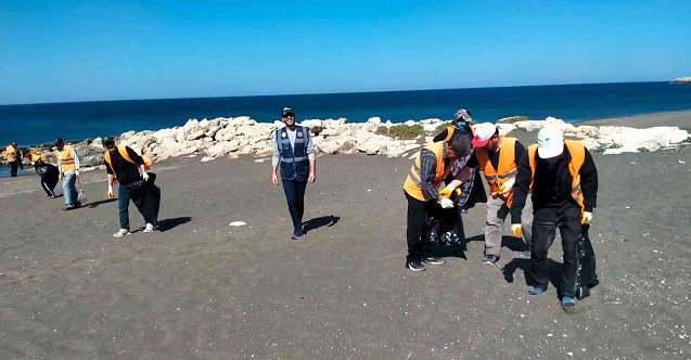 Samandağ sahilinde petrol kalıntıları için temizlik çalışması yapıldı