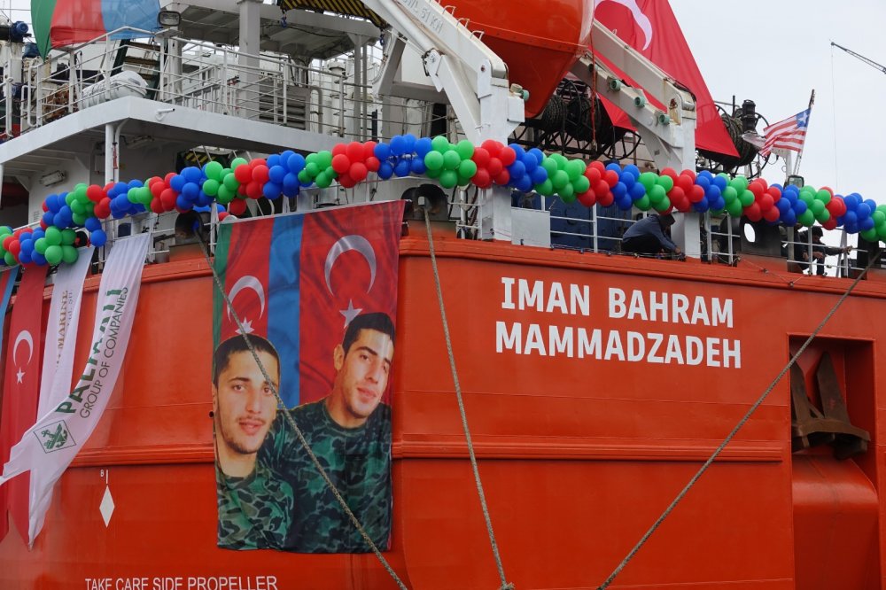 Gemi için yapılan altın madalyonun şehit kardeşlerin ailesine sunulmasının ardından İman ve Bahram Mammadzadeh kardeşlerin adını taşıyan gemi denize açıldı.
