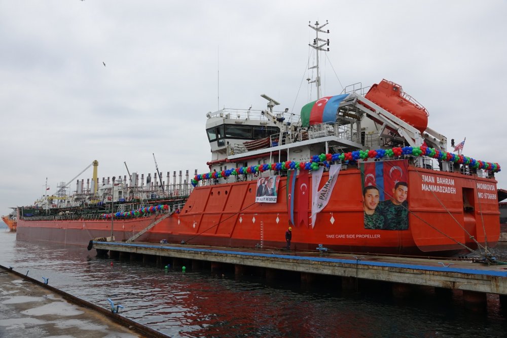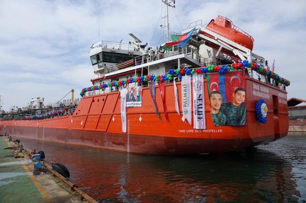 Palmali Grup, Karabağ Savaşı’nda aynı gün şehit düşen Iman ve Bahram Mammadzadeh kardeşlerin adını taşıyan yük gemisini Mübariz Mansimov ve ailesinin katıldığı törenle Yalova’da bulunan Aykın Tersanesi’nde denize indirdi.