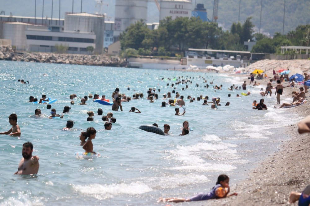 Antalya'da sıcak havayı fırsat bilenler sahile akın etti. 40 dereceye ulaşan sıcak hava sebebiyle Konyaaltı sahili adeta doldu taştı.
