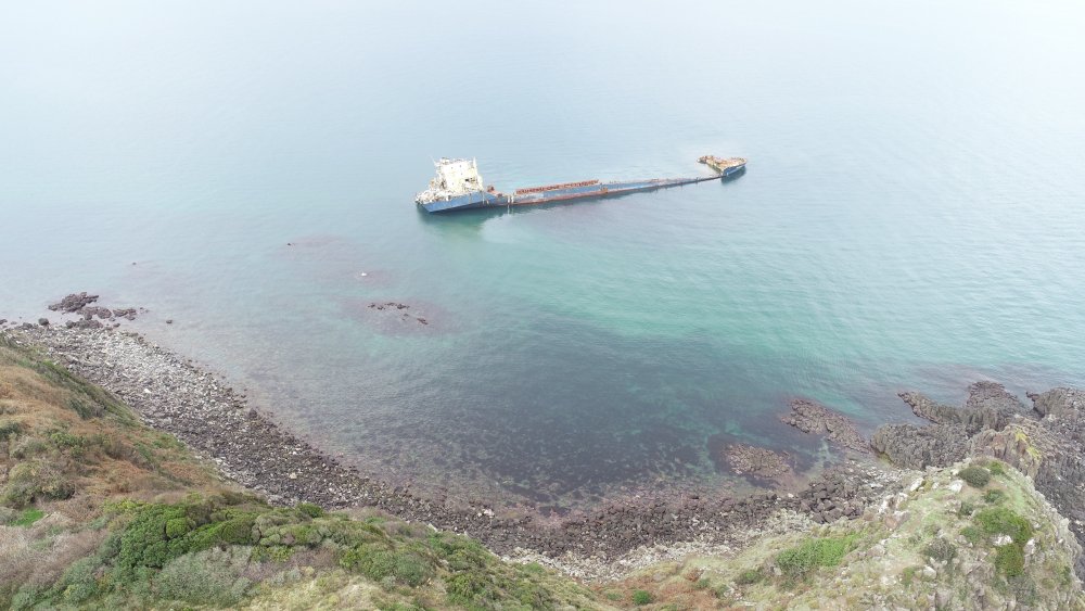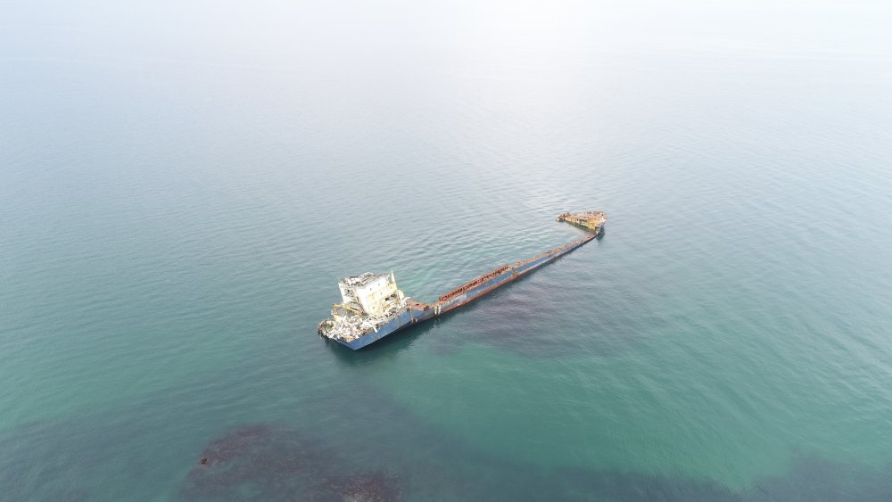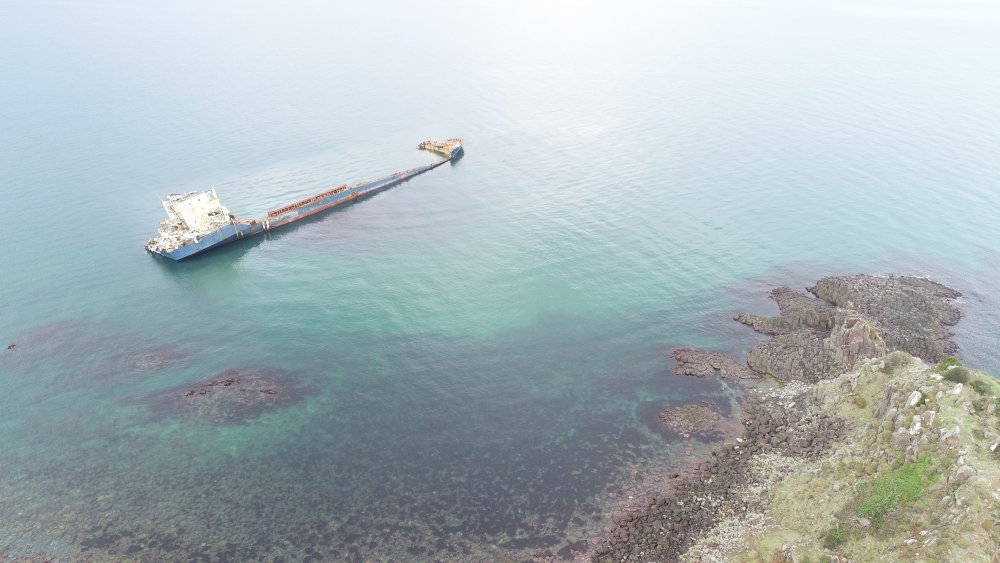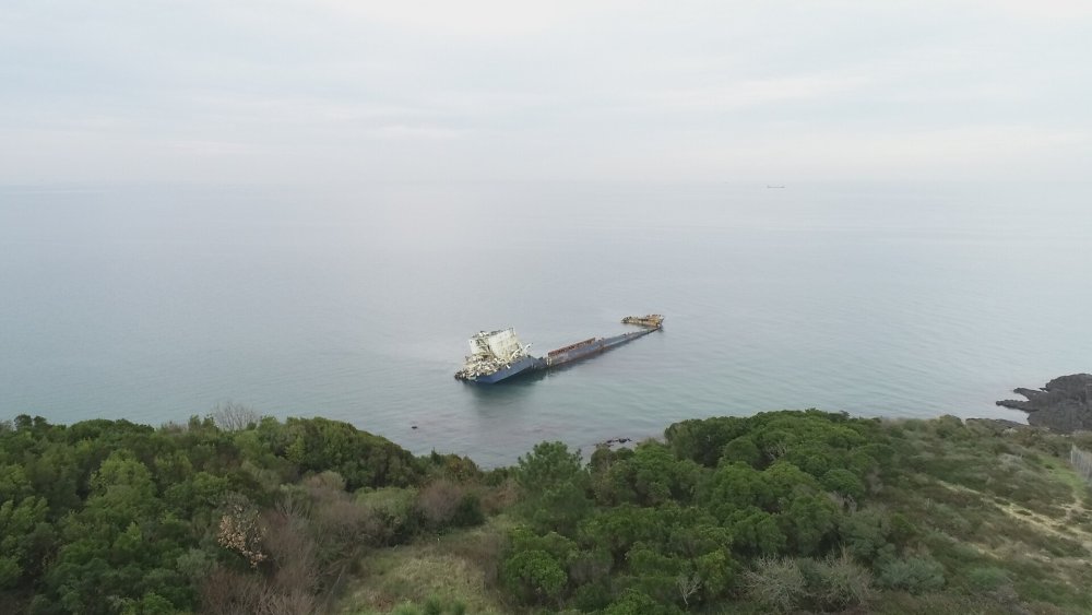 Şile'de karaya oturan geminin son hali havadan görüntülendi