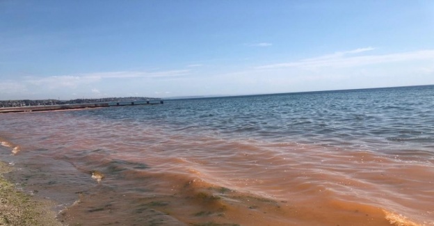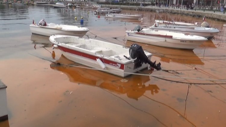 Balık yumurtaları sebebiyle kızıla bürünen Silivri Sahili ilginç görüntüler oluşturdu.