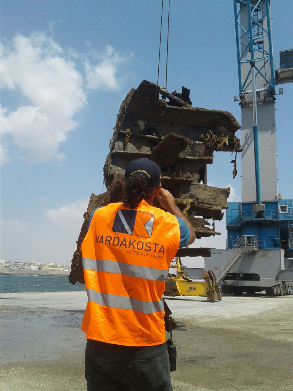 ''Uluslararası tanınmış firmaların cesaret edemediği batık gemileri çıkarma işine talip olduk. Geçen hafta ekiplerimiz liman çıkışında batıklarda çalışma yaparken yine iki ateş arasında kaldı. Bazı terör grupları Türk firmalarının bölgeyi terk etmesini istiyor ve tehdit ediyor. Magodişu Limanı ve çevresindeki batık gemilerin çıkarılması için toplam 30 kişiden oluşan 3 ayrı ekiple çalışıyoruz. Burada hem batıkları çıkarıyoruz hem de limanın temizlenmesi ve derinleştirilmesi işini yapıyoruz. Buradaki çalışmayı bir yılda tamamlamayı hedefledik. Bu çalışmalar sırasında 15 bin ton atık çıkaracağız.''