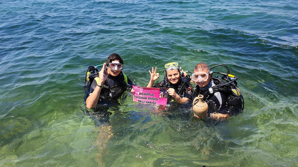 Beylikdüzü Sualtı Sporları Dünya Rekortmenleri Kulübü, su altında gerçekleştirilen tarihi bir evlilik teklifine ev sahipliği yaptı.