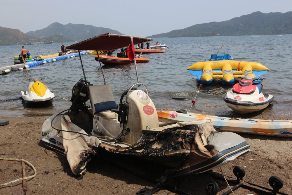 Su sporları merkezi ateşe verildi, turistler cep telefonlarına sarıldı
