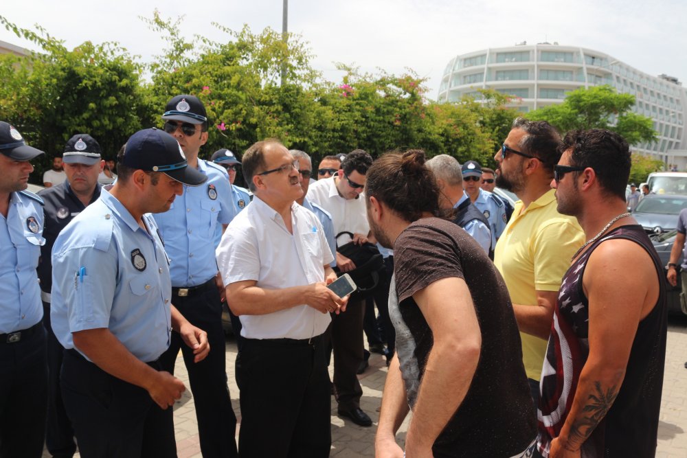 Marmaris’te geçtiğimiz hafta, sahilde bulunan su sporları noktalarının ihalesi yapılmıştı. İhaleyi kaybeden Uzunyalı’da bulunan işletmeye Marmaris Belediyesi’ne bağlı zabıta ekipleri, tahliye etmeye geldi. İşletme çalışanları, kendilerine tebligat yapılmadığını belirterek süre talebinde bulundu. Talepleri reddedilen çalışanlar üzerlerine ve sağa sola benzin dökerek kendilerini yakacakları tehdidinde bulundu. Su sporları malzemelerinin bulunduğu alan ateşe verildi. Olay yerinde bulunan güvenlik güçleri, çalışanlara biber gazı sıkarak etkisiz hale getirip, gözaltına aldı. Malzemelerin alev alması sonucu olay yerine, çok sayıda itfaiye ve ambulans sevk edildi. Tatillerini ilçede geçiren turistler ise yaşanan gerginliği cep telefonlarıyla kayıt altına aldı.