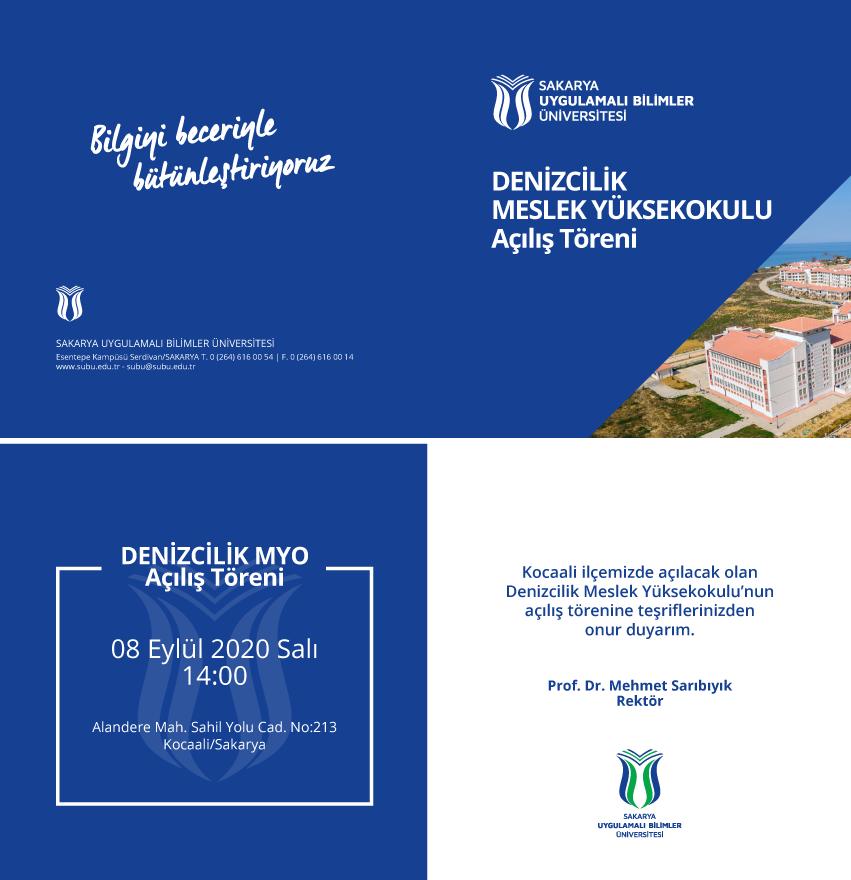 SUBÜ Denizcilik Meslek Yüksekokulu 8 Eylül 2020 tarihinde Rektör Prof. Dr. Mehmet SARIBIYIK’ın katılımıyla açılış merasimi gerçekleştirecek.