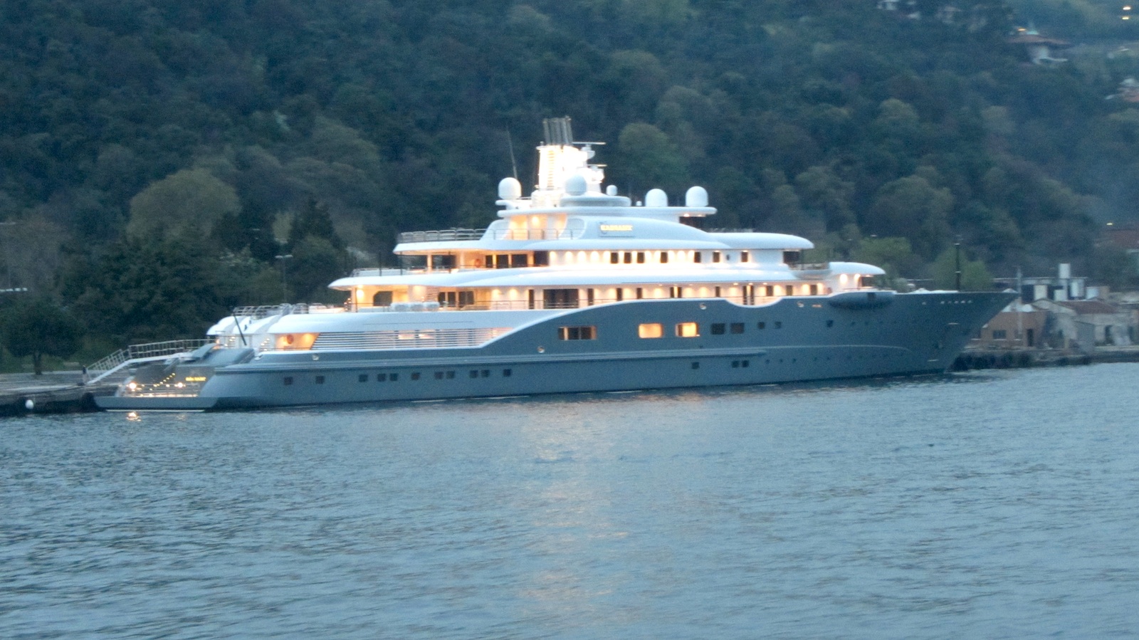 Kuruçeşme'de Savarona yatının hemen önüne demirleyen 110 metre uzunluğundaki süper lüks yatta yok yok...