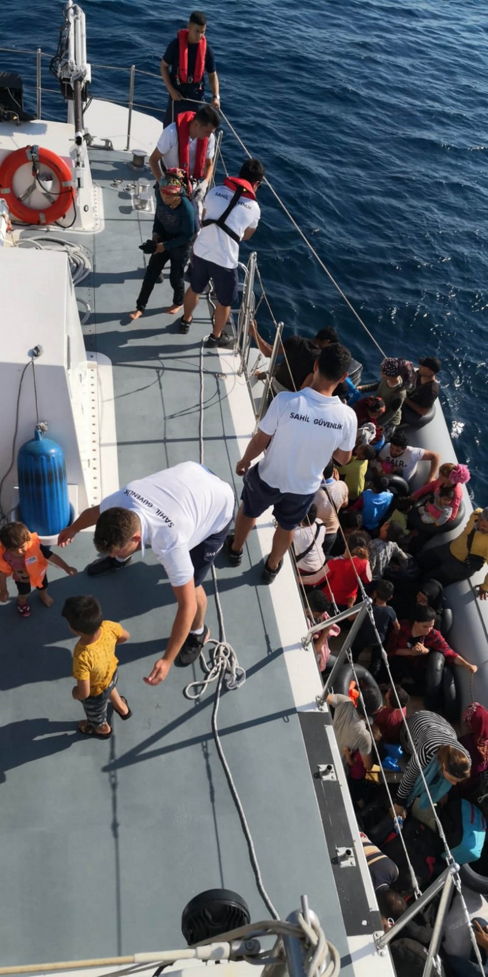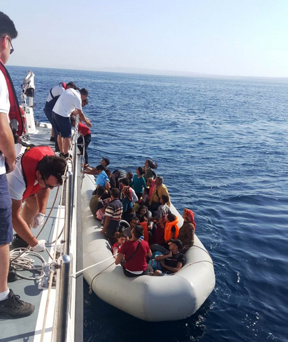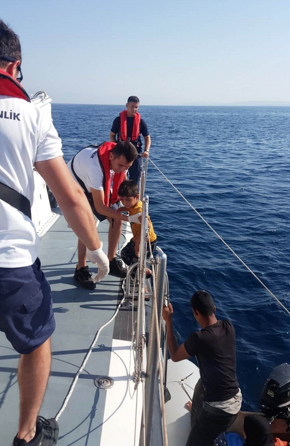 Yakalanan kaçak göçmenler ve kullandıkları lastik bot, işlemlerinin yapılması amacıyla Turgutreis Limanı’na intikal ettirildi. Çoğunluğu kadın ve çocuk olan göçmenlerin arasında bulunan birkaç aylık Suriyeli kız bebeğin ise, askerlerin kucağında getirildiği limanda ihtiyaçları karşılandı.