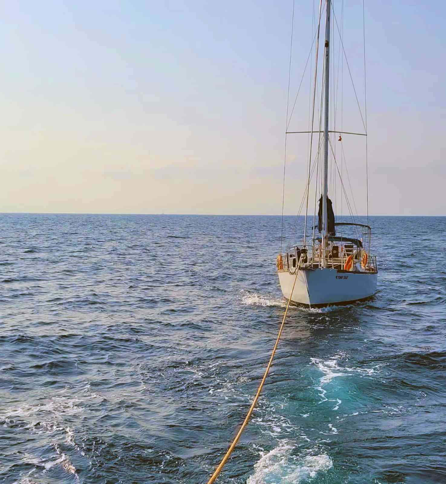 Marmaris Bozburun açıklarında makine arızası yapan ve içinde 2 kişi bulunan tekneden yapılan yardım çağrısı sonrası bölgeye sevk edilen KIYEM-2 hızlı tahlisiye (can kurtarma) botu tarafından yedeklenen tekne özel bir marinaya yanaştırıldı.