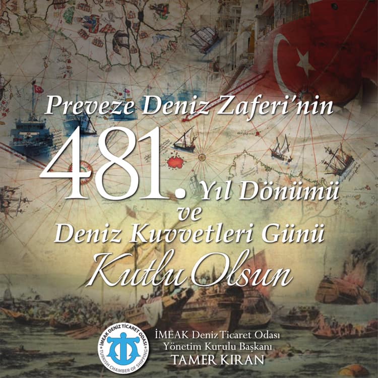 İMEAK Deniz Ticaret Odası Yönetim Kurulu Başkanı Tamer Kıran "Preveze Deniz Zaferi'nin 481. yıl dönümü ile Deniz Kuvvetleri Günü'“ ile ilgili sosyal medya hesabından bir mesaj yayınladı. İşte o mesaj: