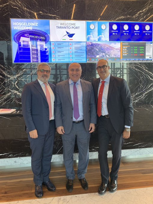 Taranto port 49 yıllığına Yılport'un YILPORT Holding, İtalya'nın topuğunda bulunan Taranto San Cataldo Konteyner Terminali'nin, 49 yıllık işletme imtiyaz haklarını alarak, İtalya'da ilk Terminali portföyüne ekledi.Sözleşme, Yıldırım Holding'in Başkanı ve CEO'su Robert Yüksel Yıldırım ve AdSP Başkanı Sergio Prete tarafından imzalandı. Anlaşma TCT'nin (Taranto konteyner terminali) tasfiyesi ve Evergreen ve Hutchinson çoğunluk hissedarlarının serbest bırakılmasından dört yıl sonra geldi.