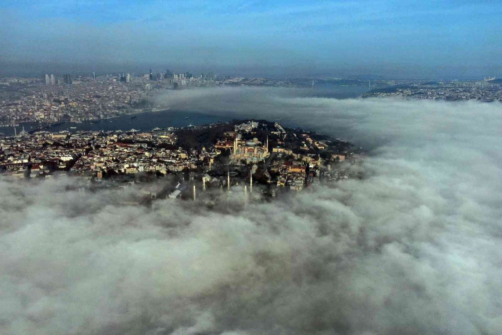 İstanbul'da etkili olan yoğun sis, tarihi yarımadada kartpostallık görüntüler oluşturdu. Ayasofya-i Kebir Cami-i Şerifi ve Sultanahmet Camii sis bulutu altında adeta kayboldu. Tarihi yarımadayı kaplayan sis bulutunun oluşturduğu masalsı anlar, drone ile havadan görüntülendi.