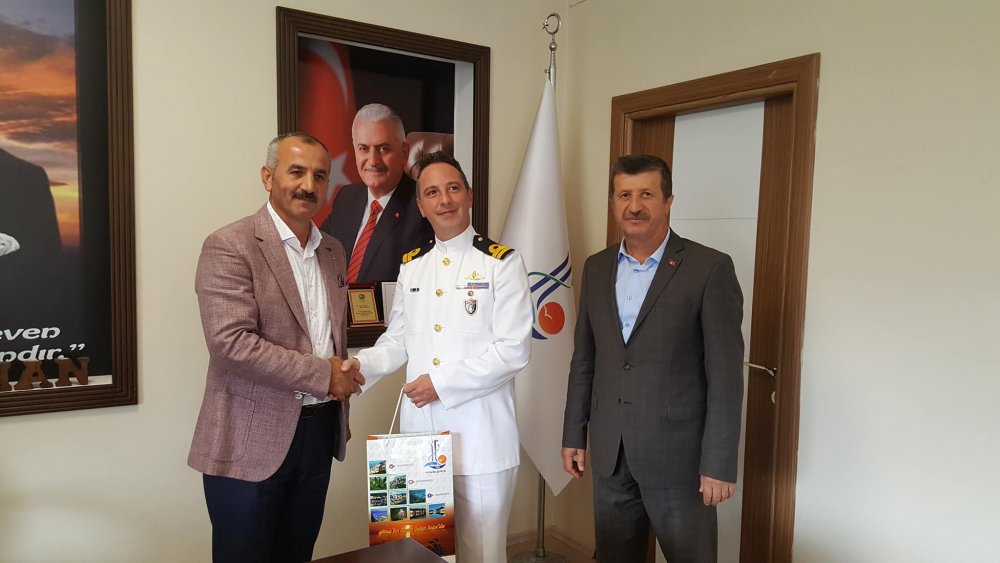 Kaymakam Canpolat, ziyaretten duyduğu memnuniyeti dile getirdi. Kaymakam Canpolat ve firkateyn Komutanı Dnz. Yrb. Mehmet Özgür Özemek, birbirlerine günün ziyaret anısına hediye takdim ettiler.