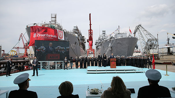 Tuzla Anadolu Tersanesi’nde düzenlenen törene Deniz Kuvvetleri Komutanı Koramiral Adnan Özbal, Anadolu Deniz İnşaat Kızakları Sanayi ve Ticaret AŞ (ADİK Tersanesi) İcra Kurulu Başkanı Sualp Ürkmez, Savunma Sanayi Müsteşarı İsmail Demir ve çok sayıda davetli katıldı.Törende konuşan ADİK Tersanesi İcra Kurulu Başkanı Adnan Özbal, Sancaktar gemisinin hikayesini davetlilere anlatarak, "Biz 16 Temmuz 2016 Cumartesi günü gemimizi denize indirmek için bir tören düzenlemiştik.