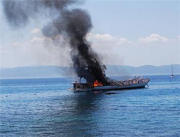 03.08.2012 günü saat 12:00'da günübirlik tur düzenleyen DIDIM MAVISI isimli tekne Ayvalik Badavut Mevkii açiklarinda yanmaya başladı.