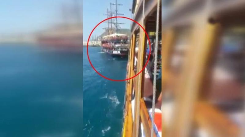Antalya'nın Alanya ilçesinde içinde çok sayıda turistlerin bulunduğu 2 günübirlik tur teknesi, aralarındaki husumetten dolayı kasıtlı olarak çarpıştı.