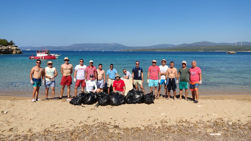 Sığacık koylarında kıyıları ve deniz dibini temizlemek üzere 31 Mayıs sabah saat 9.00’da Teos Marina’dan hareket eden gönüllü personel, topladıkları çöpleri marinanın yangın söndürme teknesi ve botlarla marinaya taşıdı.