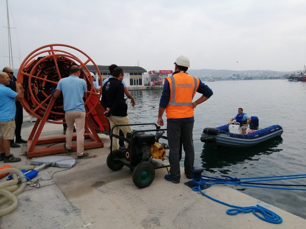 Deniz Çevresinin Petrol Ve Diğer Zararlı Maddelerle Kirlenmesinde Acil Durumlarda Müdahale Planı kapsamında deniz çevresinin petrol ve diğer zararlı maddeler ile kirlenme riskinden korumak için teorik ve pratik eğitim yapıldı. Teos Marina liman personeli ve MEKE firması yetkilisi Yasin Latif Yazan ve ekibinin de katıldığı tatbikat, dikkatle uygulandı.