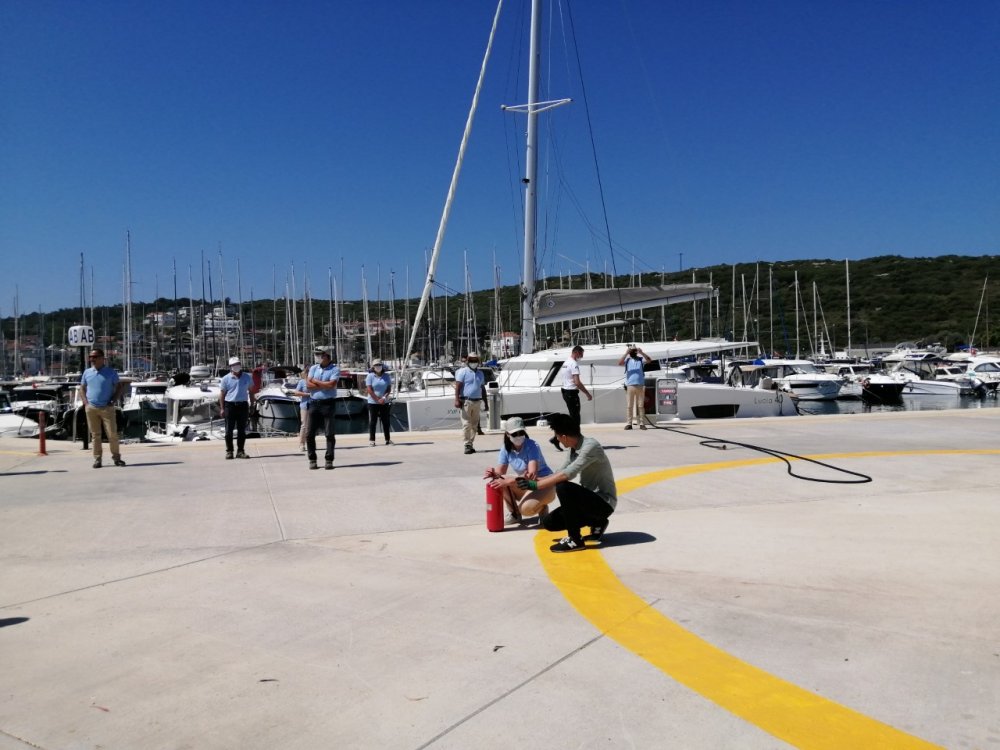 İzmir’in Seferihisar ilçesindeki yat limanı Teos Marina’da, acil durumlara her zaman hazırlıklı olmak amacıyla tüm personel ve yöneticilerin katılımıyla yangın eğitimi ve tatbikatı yapıldı.