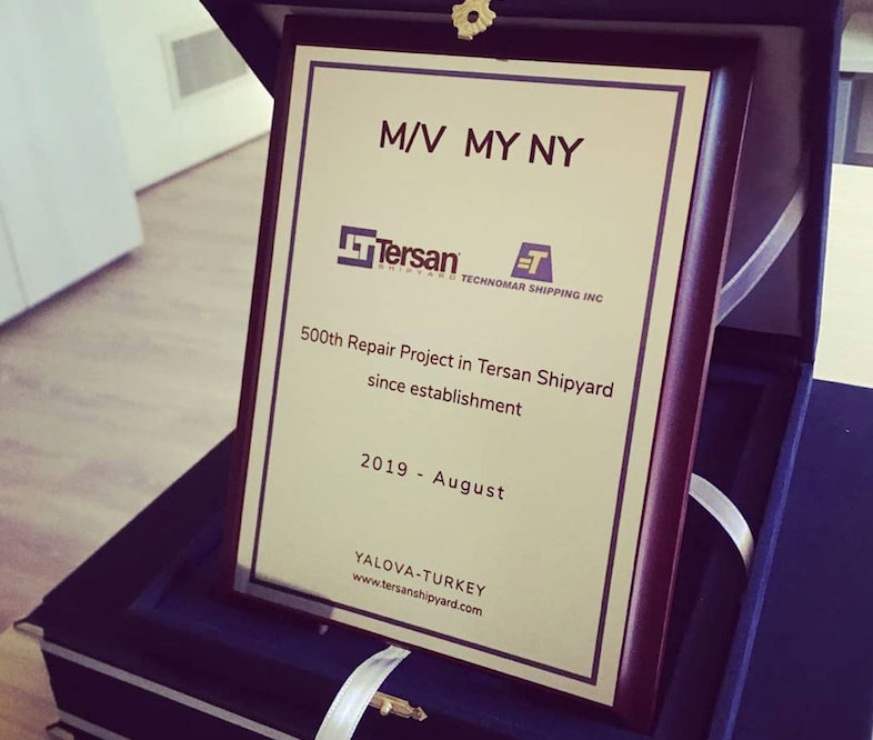 Gemi inşaanın yanısıra bakım ve tamir hizmeti de veren Tersan Tersanecilik, Yunan Technomar Denizcilik’e ait MY NY adlı gemi ile beraber 500’üncü gemiyi tamir projesini tamamladıklarını açıkladı.