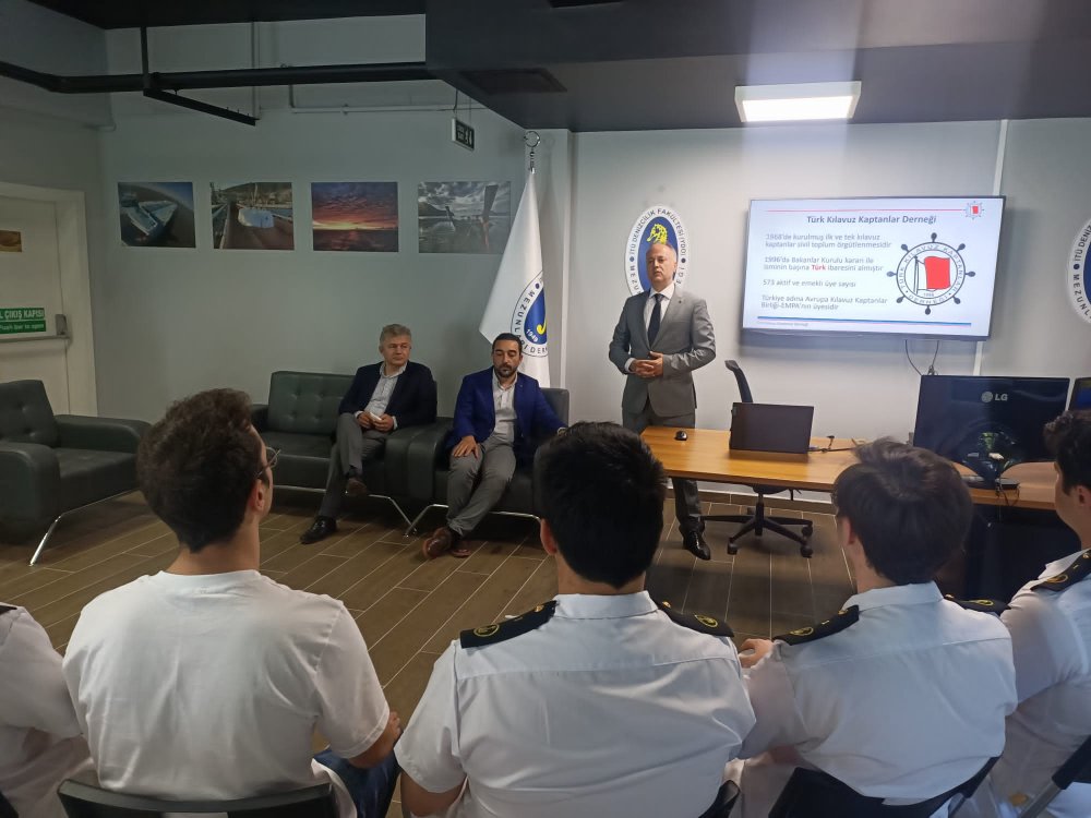 Etkinliğe katılan TKKD Yönetim Kurulu Başkanı Kaptan Mutlu Dündar, TKKD Genel Sekreteri Kaptan Gürhan Aktürk ve TKKD Yönetim Kurulu Üyesi Kaptan Kamil Mamat öğrencilerle kılavuzluk mesleğinin tanıtımına ve kılavuz kaptan transfer emniyetinin önemine yönelik bir forum gerçekleştirdi.