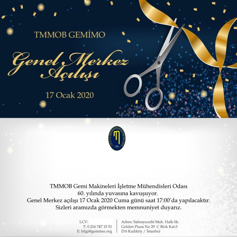 Denizcilik sektörünün öncü kurumlarından olan TMMOB Gemi Makineleri İşletme Mühendisleri Odası 29.07.1960 tarihinde kurulmuştur. Kuruluşunun 60 Yılında seminer ve eğitimlerin adresi olacak genel merkezinin açılışına tüm üyelerimiz ve sektör bileşenlerimiz davetlidir. TMMOB' yi oluşturan ilk odalardan birisi olan Gemi Makineleri İşletme Mühendisleri Odası, kurulduğu 1960 yılından bugüne, denizcilik sektöründe ülke ve toplum yararı doğrultusunda üretimin ve kalitenin artırılması yönünde çalışmalar yapmaktadır. Ayrıca mesleki alanlardaki yeni gelişmeleri tartışmaları izleyebilmesi ve aktarabilmesi için mesleki sorunların dile getirilebilmesi, kamuoyunun bilgilendirilmesi, ilgili alanlarda politikaların oluşturulması amacıyla uluslararası ölçekte kongreler ve sempozyumlar düzenlemektir.