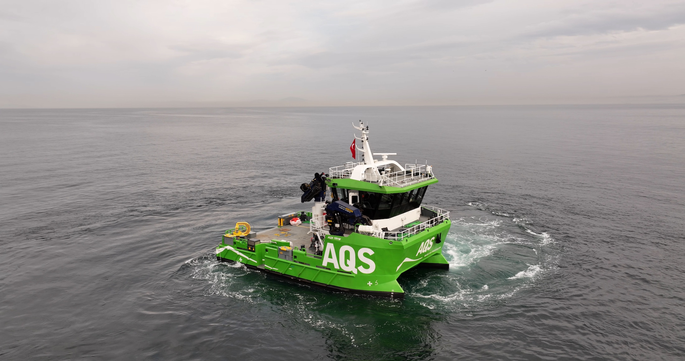 Katamaran gövde yapısına sahip, 310 gross tonluk AQS TRYM, Norveç’in en kuzey bölgesinde bulunan balık çiftliklerinde -20 derece sıcaklıkta hizmet verecek. Bir çok geminin özelliğini tek bir gövdede bir araya getiren gemi AQS firmasının ilk elektrikli gemisi olma özelliğini taşıyor.