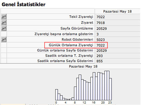 Ortalama 5 bin civarında olan farklı ziyaretçi sayımızın bu ivme devam ettiği takdirde önümüzdeki 1 ay içerisinde günde 10 bin farklı IP'den 50 bin sayfa açılımına ulaşmasını bekliyoruz.