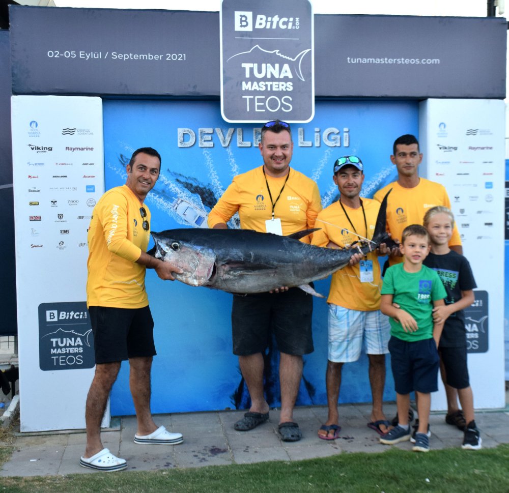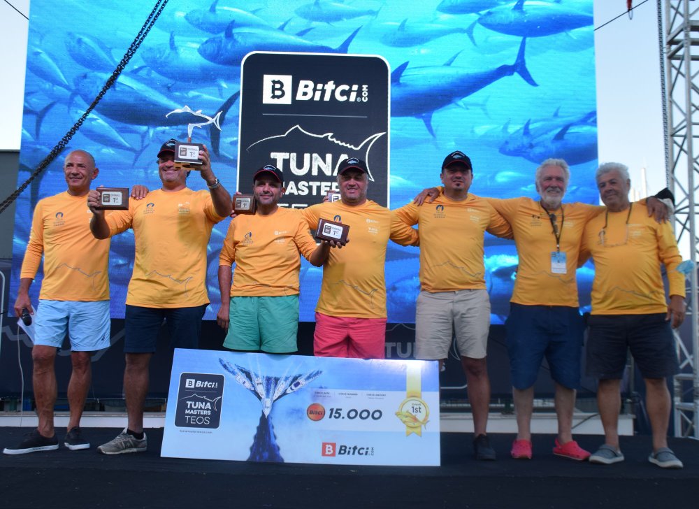 Çağlar Akan, Fadıl Zandar, Cihan Okay ve İbrahim Sönmez’den oluşan Veloce teknesi ekibi turnuvanın iki günlük yarış takviminin ikinci gün yarışlarında yakaladıkları 187 cm boyundaki 120 cm çapındaki 95 kilo 900 gram gelen bluefin ile turnuvanın ‘En Büyük Balık kategorisinin şampiyonu oldular. Ekip, Bitcicoin tarafından 15 bin kripto para çekiyle ödüllendirildi. Ekibe ödülleri Teos Marina Genel Müdürü Faruk Günlü tarafından takdim edildi. Ekibe ayrıca turnuva alanında sergi açan Driftwood sanatçısı Cem Özipek tarafından orkinos temalı bir eseri hediye edildi.