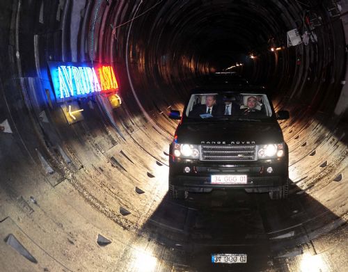 Erdoğan, tünelin ortasında yer alan ışıklı Asya-Avrupa geçiş levhası önünde, basın mensuplarının fotoğraf ve görüntü almalarına izin verdi. Beykoz Şaftı'nda da Veysel Eroğlu'ndan bilgi alan Başbakan Erdoğan, daha sonra Derbent'e döndü. Başbakan Recep Tayyip Erdoğan'a, tünel kazısında çıkarılan taşlardan yapılan bir kalemlik hediye edildi.