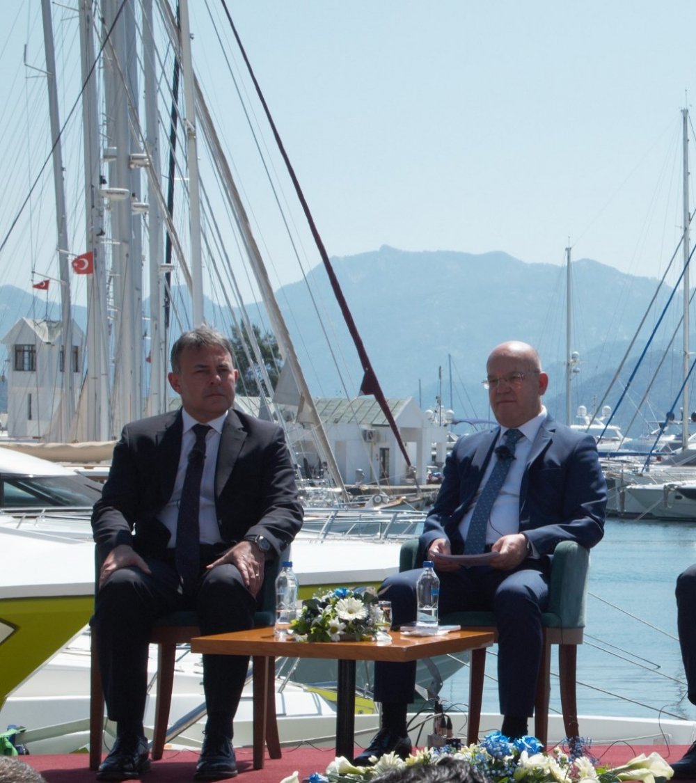 Panelde konuşma yapan Deniz Ticaret Odası Yönetim Kurulu Başkanı Tamer Kıran “Cari açık sorunu yaşayan ülkelerde yabancı paraya dayalı her türlü gelir önemlidir ve ekonomiye büyük katkısı olur. Deniz turizmi de bu anlamda önemli bir gelir kaynağıdır. 10 bin üyeye sahibiz, 4 bini fiilen deniz turizmiyle ilgileniyor. Denizcilikte deniz taşımacılığı yüzde 35 ile birinci, gemi inşa ve tamir bakım sektörü yüzde 25 ile ikinci, limanlar yüzde 17 payla üçüncü sırada. Deniz turizmi bu sektörlerden sonra geliyor. Deniz olmazsa turist gelmez, denizcilik desteklenmeli. Sigorta maliyet değildir. Bütün üyelerimize konuya böyle yaklaşmalarını ve bu imkanı değerlendirmelerini tavsiye ediyorum. Potansiyelimiz yüksek, deniz turizminin turizm gelirleri içindeki payını daha yukarılara çekebiliriz” dedi. 3.650 tekne kapasitesi ile güney Ege’nin en büyük ve modern yat limanına sahip ve Türkiye’nin lokomotif limanlarından biri Marmaristir." dedi.